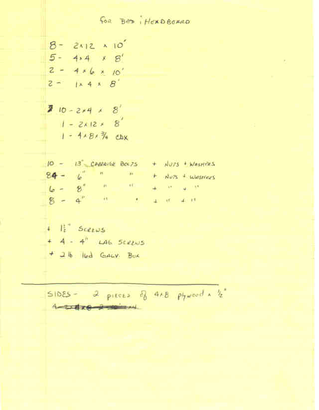 This is the "shopping" list I took with me to the lumber yard.4) The "cleanest" parts list. Also the original list, which does not reflect what I actually bought.