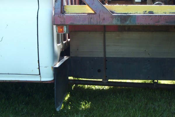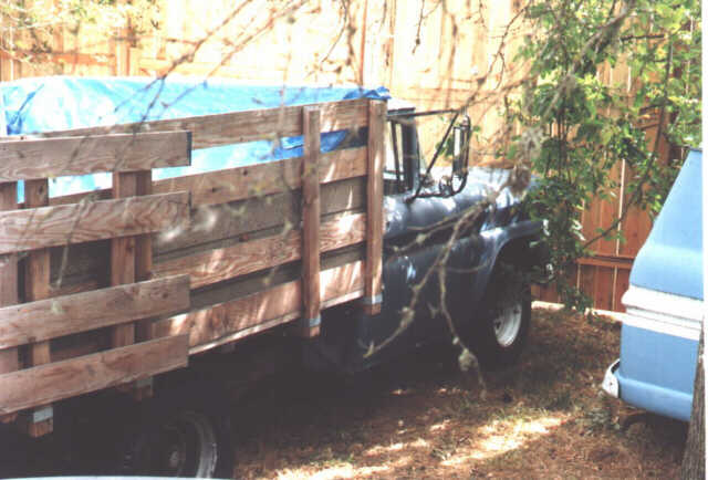 The sideboards ended up being 1x6 with 4 2x4 uprights. I plan on rebuilding these as I used less than good wood (I used cheap stuff) because I needed the truck right away. I will be using 3" angle iron at the headboard to form a channel for one end of the sideboards to slide into (currently they are nailed to the headboard. Not very removable that way!). Currently the uprights are slid into pockets formed at the end of 4 of the 4x4 cross members, the pockets are made out of standard Simpson connectors. I also have to rebuild the gates as the current design is awkward to use.