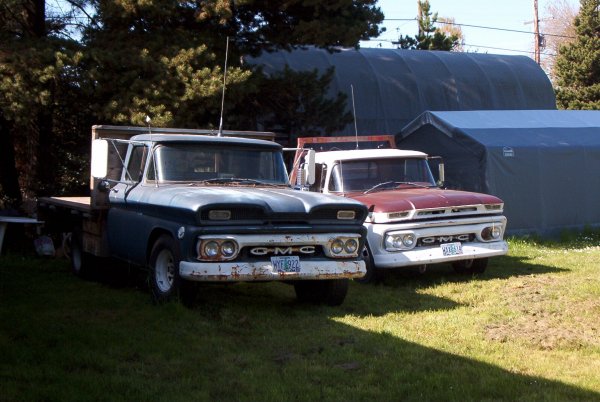 My '61 flatbed sitting next to the '63 carhauler.
